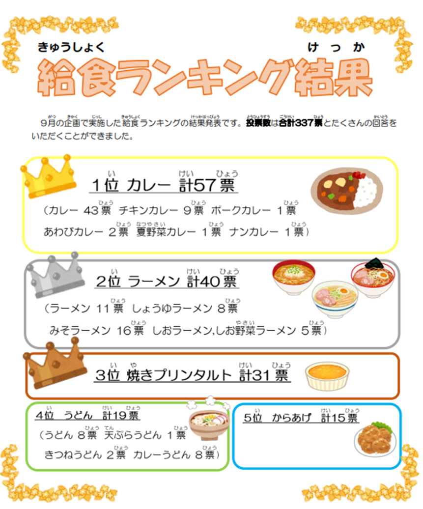 9月献立表&食育だより 10月献立表&食育だより 11月献立表&食育だより