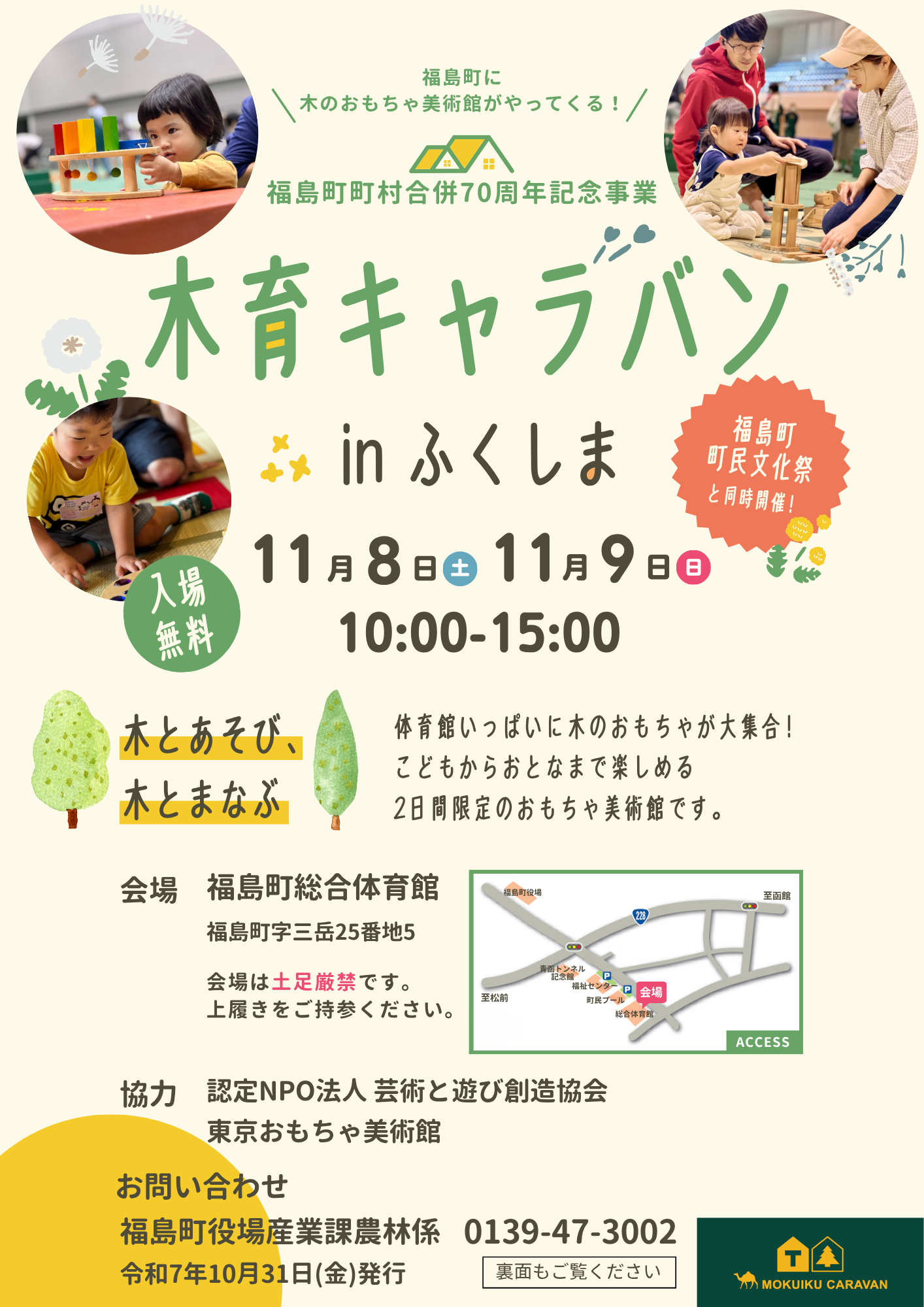 11月8日(土)~9日(日)、福島町総合体育館において、『木育キャラバンinふくしま』を開催します!!